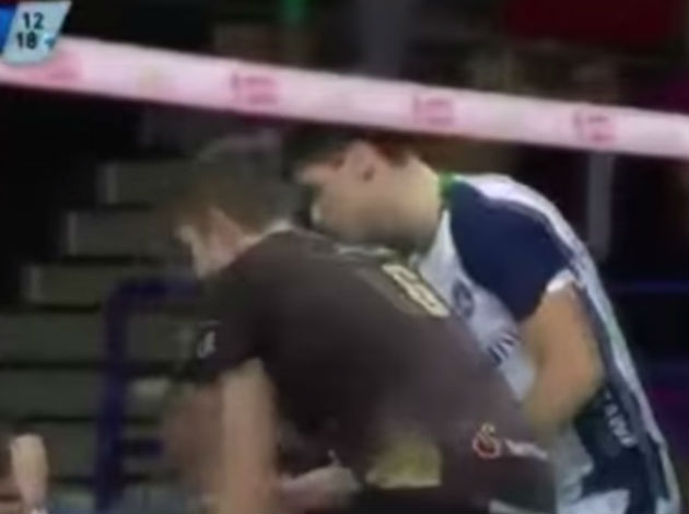 Conte literally lost balance from this headshot and fell on his back, but stood up quickly and continued the match.
