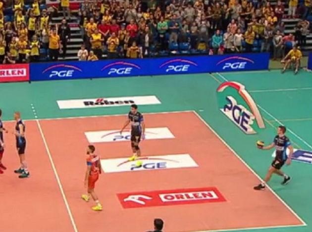 Not just that Boladz made a huge service fail, but he also made it in the worst possible moment for his team. PGE Skra Belchatow were leading against Czarni Radom by 24:23, while then Boladz did this…