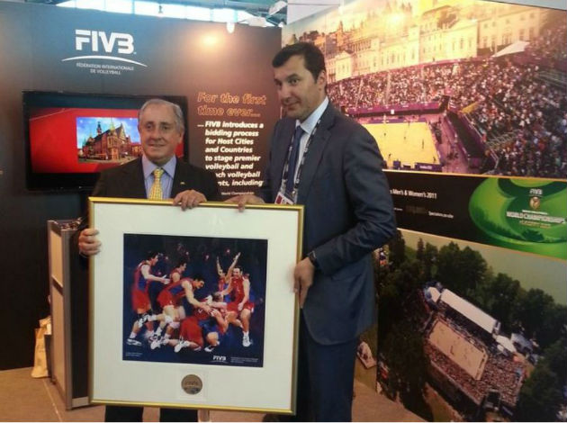 During the meeting at the FIVB stand at SportAccord, Mr. Shevchenko also presented an appreciation gift to President Graça – a painting of a golden FIVB medal.