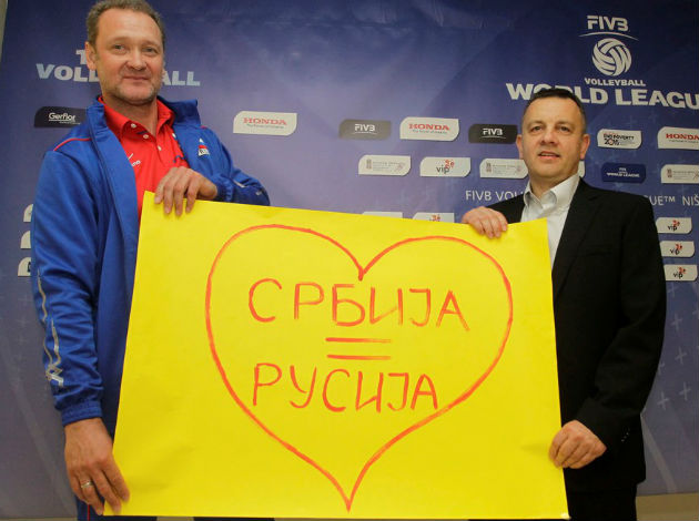 “We got this poster from the Serbian fans and it says that Russia and Serbia are great friends even the net separating us on the court. In our hearts there is a great friendship and love, that is what has always been very important. With the hand written message on a poster showing Russia and Serbia in a big heart, showed me that we played in a friendly country with friendly audience” said Andrey Voronkov and took photos with Igor Kolaković for the memory.
