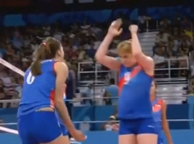 Brankica Mihajlović and Tijana Malešević got so fired up during this point that at the end they decided to celebrate it with a strong “high ten” slap… It was a bit too strong though…