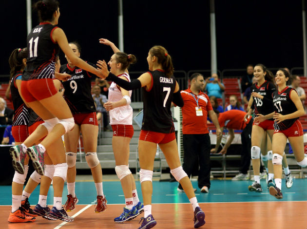 Turkish girls have celebrated 3-1 win by sets 17-25, 25-15, 25-22, 25-21 and the top scorer of the match was Pelin Aroguz with 20 points while Celine Van Gestel scored 19 points for Belgium.