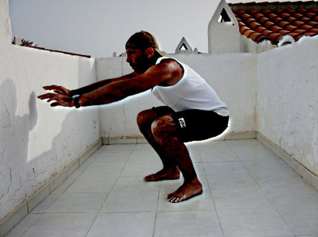 3. Half squats – Without any help, lower yourself till your thighs are parallel with the floor, and come back up.