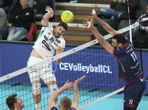 Lanza intercepted the ball that was about to be set, the second touch, and made a monster back-row kill! Zaksa setter Benjamin Toniutti was visibly pissed off that Lanza managed to trick his team like this…
