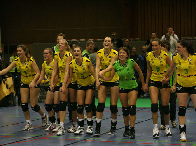 Lies van Wyngene, Anja van Damme and Karolien Verstrepen contributed the deciding break in set 3 as they moved the score from 14 all to 18:14 for Hermes and eventually resisted to a Greek comeback for the final 25-19.
