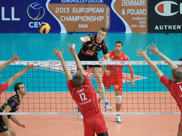 The match was quite close in the opening set where the final break was claimed by home middle blocker Dragan Stankovic who scored for the 24:22 blocking Christian Duennes. The final point was then claimed by wing-spiker Simone Parodi, the best player of Italy’s champions tonight.