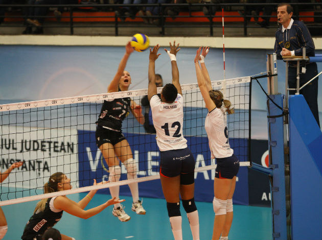 Even though the weather was really cold there on the banks of the Black Sea, the local fans were able to contribute a great atmosphere in the sports hall as they loudly cheered on their heroines for almost two hours of play. The start of the game was very close and after Tomis had moved up 11:6 anchored by the attacks killed by Jeoselyna Rodriguez Santos, Robur Tiboni URBINO fought back to flip the charts around (15:16). The sides played point for point before the home heroines could pocket the final 25-22 with their captain and middle blocker Claudia Gavrilescu standing out in that close final rush.