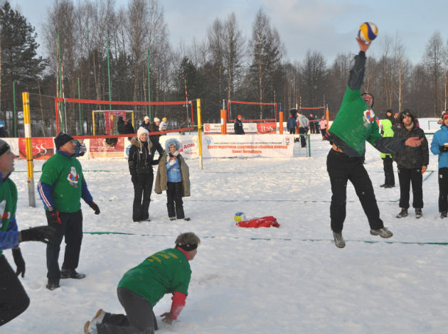 9 courts were set up as the organizers provided all participants with t-shirts, gifts, special souvenirs, while balls were donated by the Russian Volleyball Federation. Actually it was much more than just a Volleyball tournament, as the festival included some more contests, such as rope pulling, valenok throwing and dogsledding, all entertainments traditionally practiced by Russian people during the Christmas time. Hot tea and porridge with meat were prepared by a camp-kitchen at the expense of the organizers too.